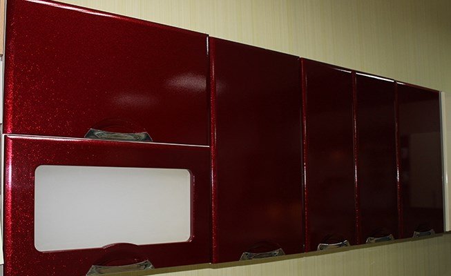 Несколько образцов фасадов красного цвета, для кухонь изготовленных на заказ.(Каталог кухонных фасадов)