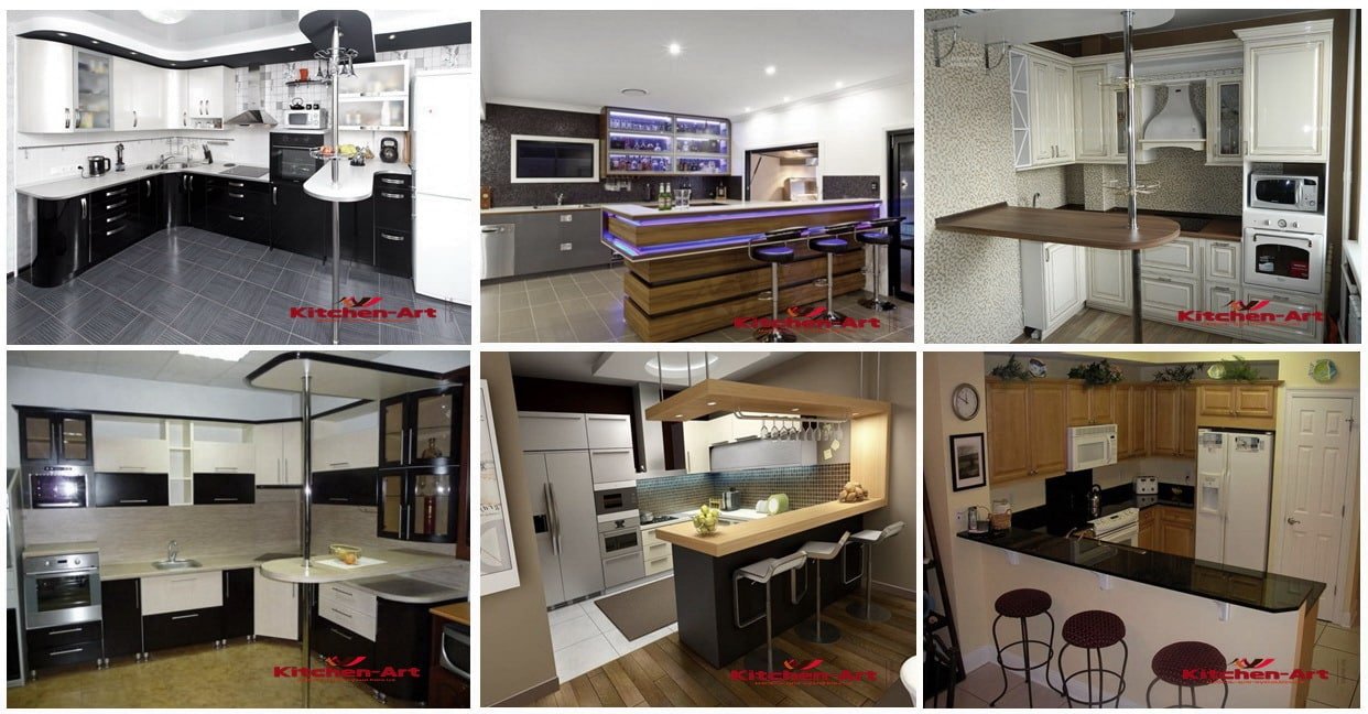 Кухня с барной стойкой, как и с кухонным островом очень удобное решение для эргономического использования пространства кухни на все 100%. Кухонная барная не только создаст необычный дизайн вашей кухни, но и увеличит полезное пространство вашей кухонной мебели. (См.Элитные кухни под заказ)
