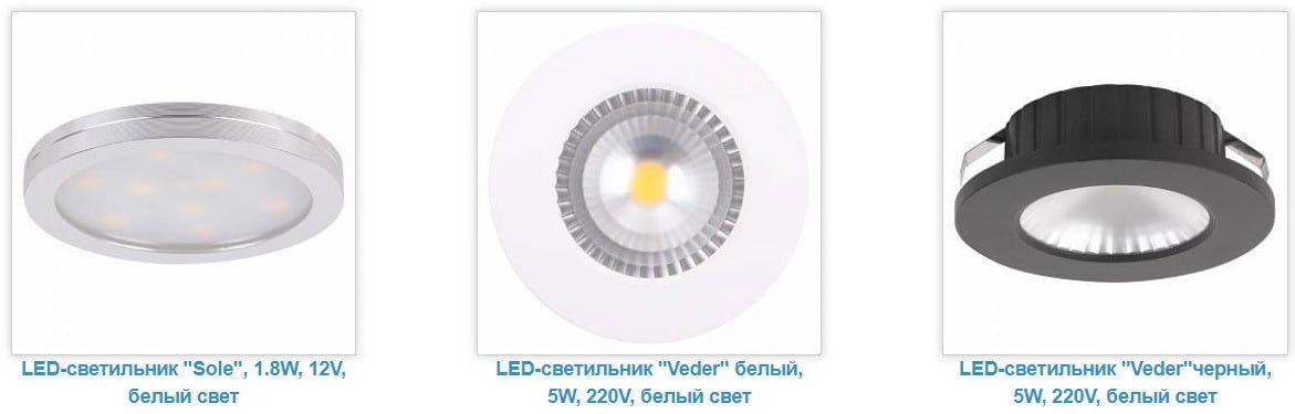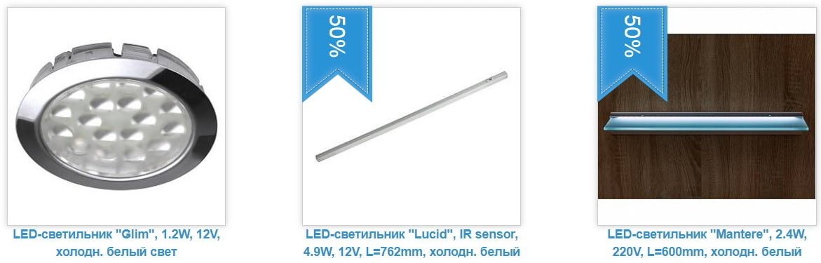 Каталог светильников и лап для кухонной мебели