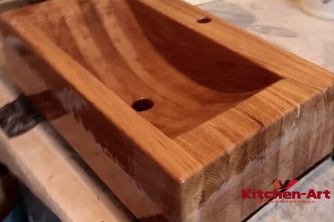 Все раковины из натурального дерева имеют специальную обработку и водонепроницаемое покрытие.