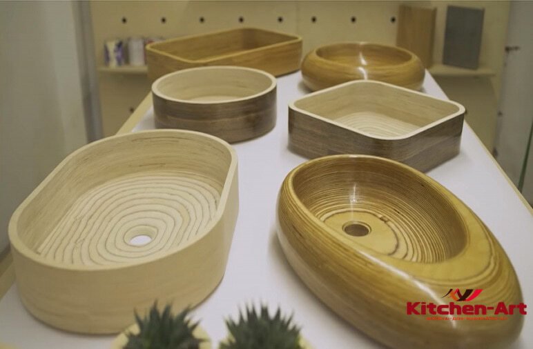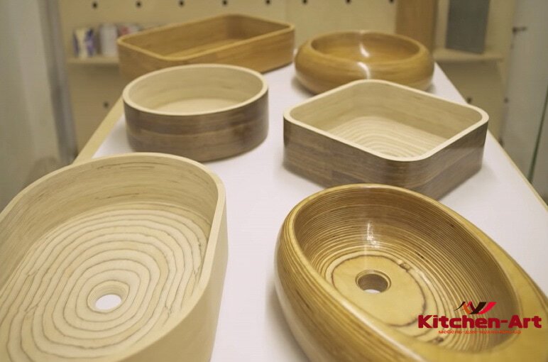 Так как дерево исключительно пластичный материал, деревянным раковинам модно придавать самые разнообразные формы, от правильных геометрических, до причудливых ассиметричных.